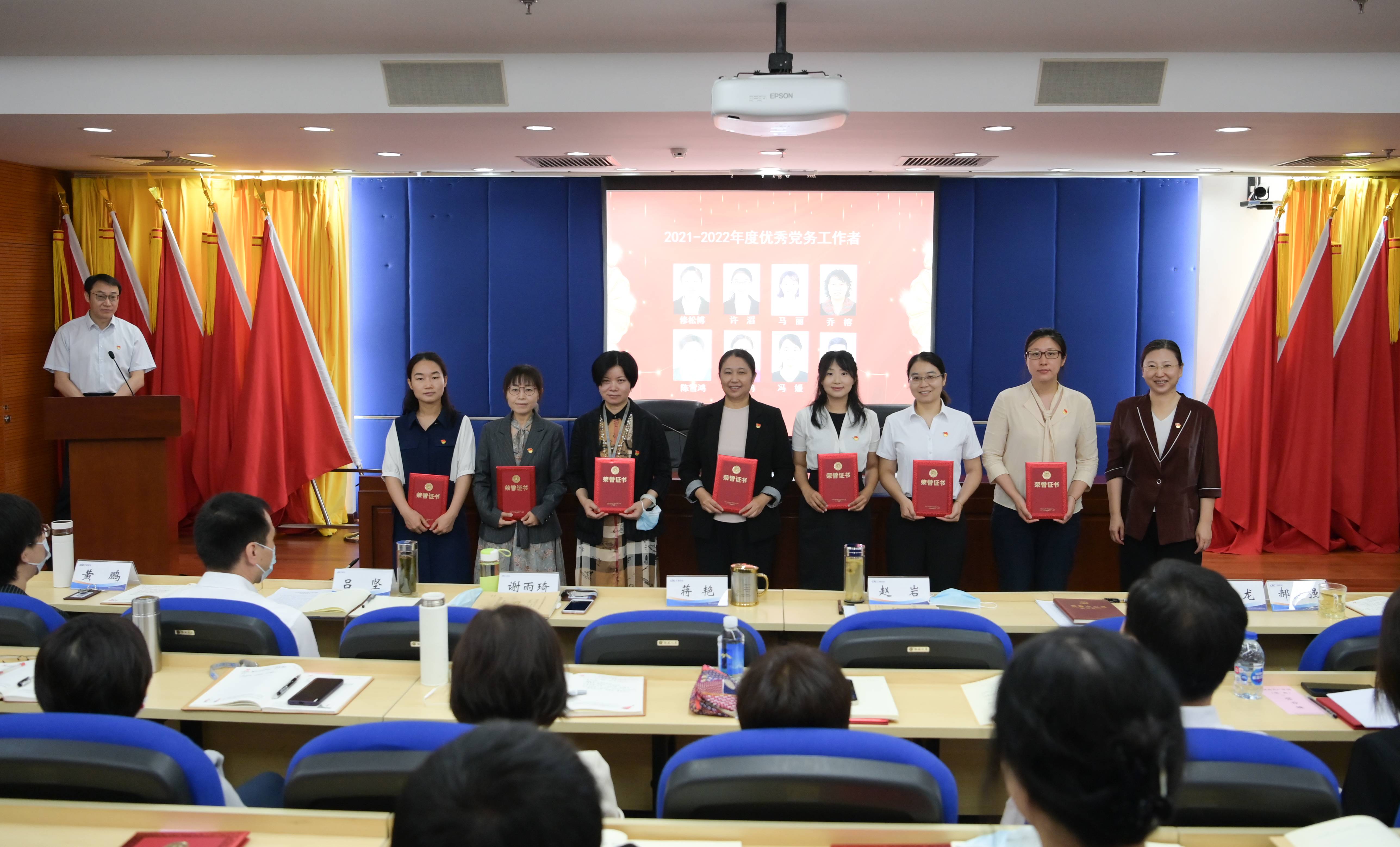 上午9时,大会在雄壮的国歌声中拉开帷幕。会上,蒋艳同志宣读了《中共优米棋牌软件怎么样委员会关于开展2021-2022年度“两优一先”表彰的决定》,中心领导班子成员为获得先进党支部、优秀党务工作者以及优秀共产党员的集体和个人颁发荣誉证书。6个先进党支部党员代表围绕支部党建工作典型做法、特色亮点以及在推动业务工作中支部战斗堡垒作用和党员先锋模范作用发挥成效等方面作了重点交流发言。中心党委号召各党支部和广大党员要向受表彰的先进集体和个人学习,汲取奋进力量,将榜样力量转化成为推进中心事业改革发展的强大动力。