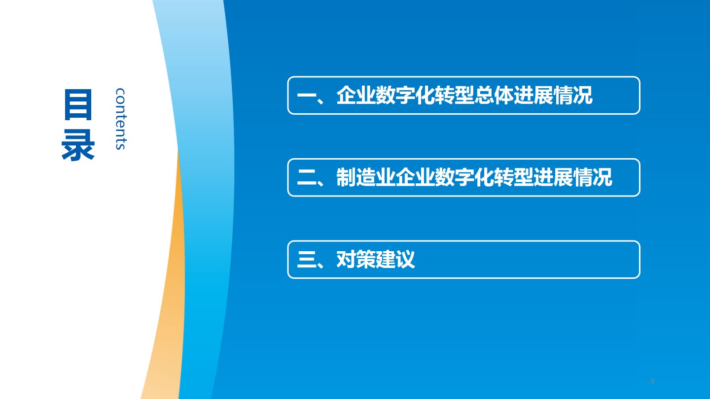 2021年3月发布的《中华人民共和国国民经济和社会发展第十四个五年规划和2035远景目标纲要》明确指出,要打造数字经济新优势,推进数字产业化和产业数字化。推进产业数字化,需要依靠企业来实现,企业数字化转型是产业数字化发展的基石,将在产业数字化进程中发挥关键性作用。因此,明确企业数字化转型进展情况,对于下一步加快推进企业数字化转型具有重要作用和指导意义。