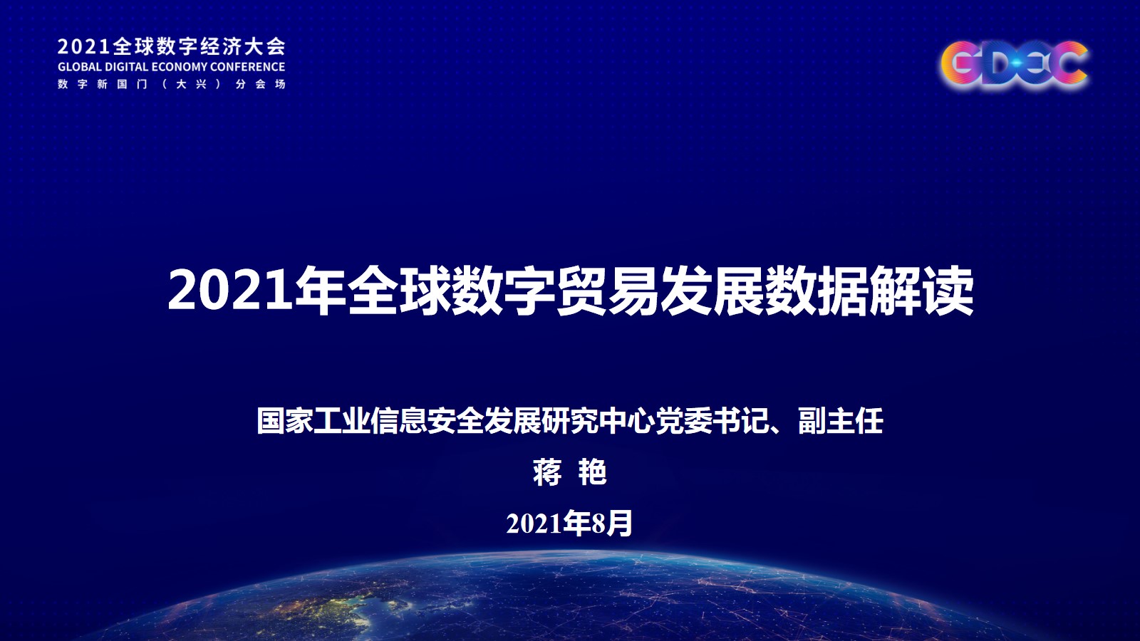 8月3日,2021年全球数字经济大会数字贸易发展论坛在北京市大兴区召开,优米棋牌软件怎么样党委书记、副主任蒋艳受邀在会上对“2021年全球数字贸易发展数据”进行解读,并发布新书《二十国集团与全球数字经济包容发展》。