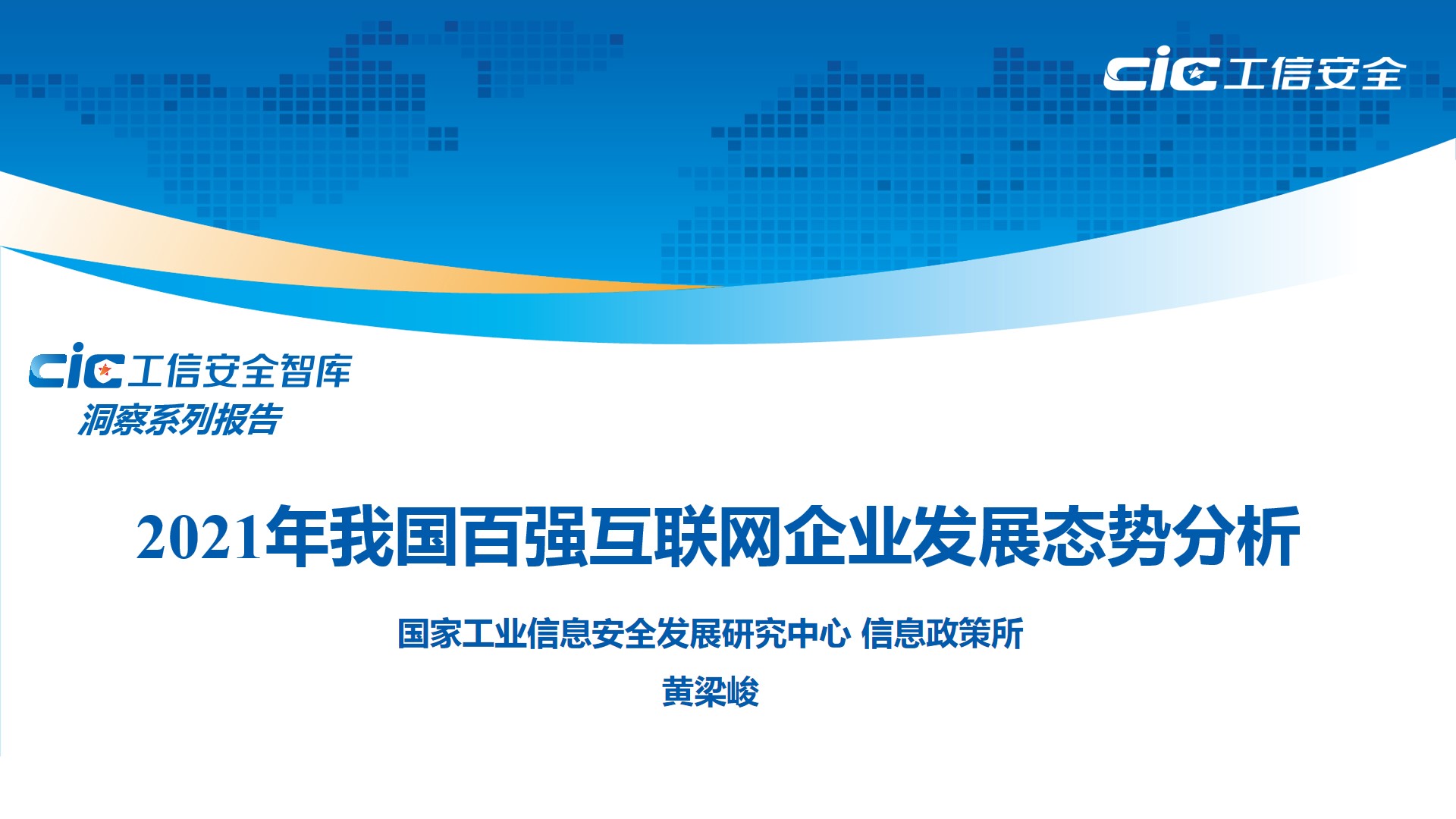 发布 | 国家工信安全中心发布《2021年我国百强互联网企业发展态势研究》