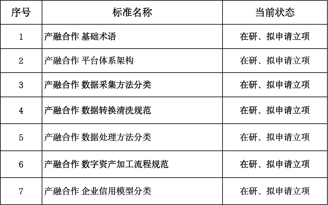 围绕利用数字化手段赋能金融创新的实际需求,推动形成科技、产业、金融良性循环,开展产融合作相关领域标准的研究、制定修订、测试验证、宣贯推广和国际标准化工作,为提高金融资源配置效率、促进产业链上下游企业融通发展提供有力支撑。目前,产融合作标准工作组(TC573/WG19)拟先期推动的标准项目如下表所示。