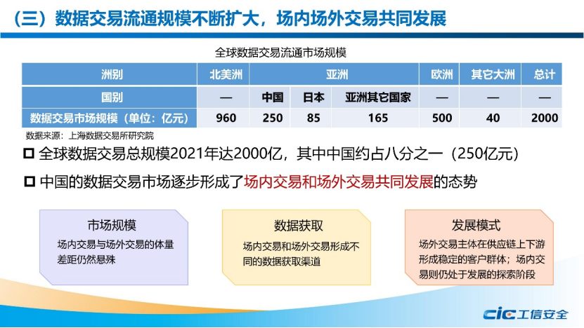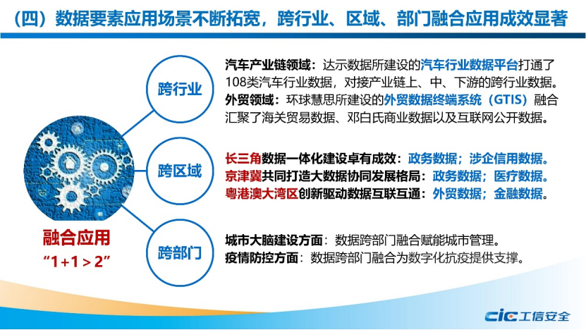 《研究报告》指出,从发展现状上看,我国数据资源总量日益扩大,数据供给方、需求方、中介方、服务方等市场参与主体不断丰富。以外部社交网络、可穿戴设备、车联网、物联网等为代表的数据采集渠道日益丰富,存储中心和云计算的发展大幅增强了数据存储和处理能力。数据开放共享不断推进,政企数据合作、公共数据授权运营等模式成效初显。数据交易流通规模不断扩大,形成了场内交易和场外交易共同发展的格局。数据要素应用场景不断拓宽,跨行业、跨区域、跨部门融合应用成效显著。数据跨境流动探索有序开展,各地通过方案创新先行先试。