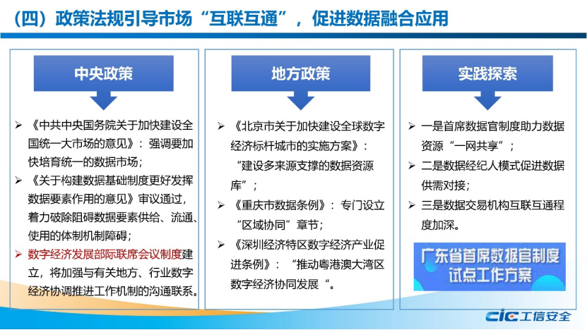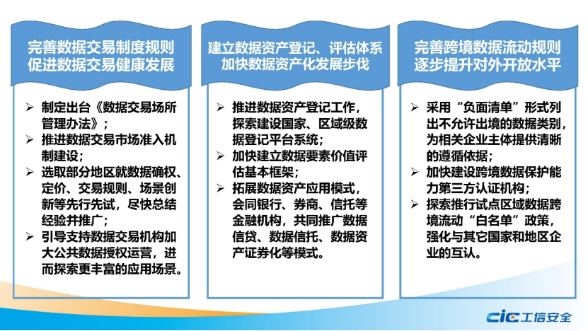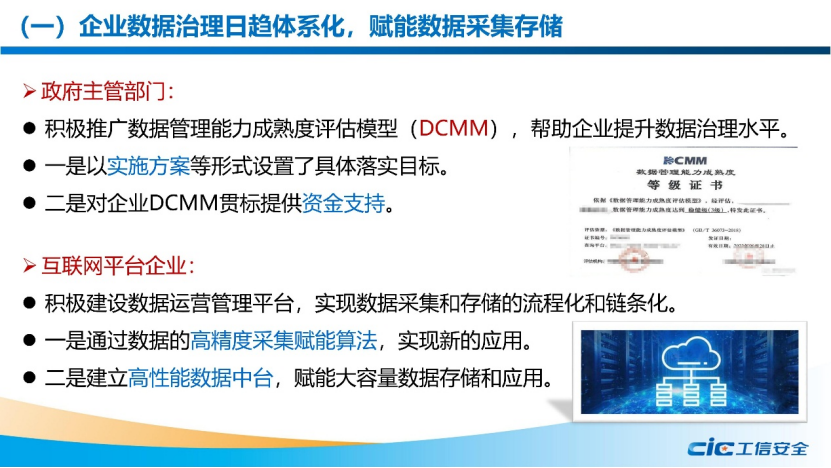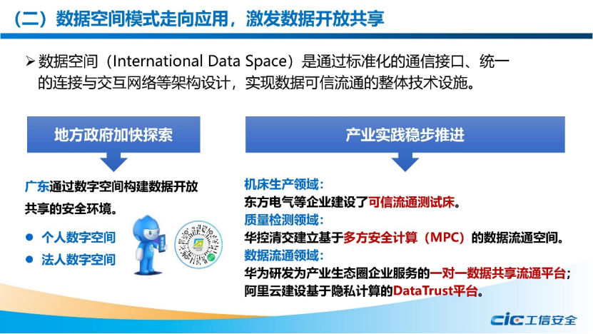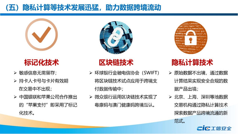从发展的新动向和新趋势上看,数据管理能力成熟度评估模型(DCMM)贯标有效帮助企业提升数据管理能力,赋能数据采集存储。数据空间模式走向应用,激发数据开放共享。数据登记逐步受到重视,规范数据交易流通。相关政策法规引导数据要素市场“互联互通”,促进数据融合应用。数据标记化技术、区块链、隐私计算等技术发展迅猛,助力数据跨境流动。