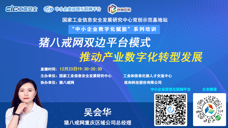 12月23日,由优米棋牌软件怎么样联合工业和信息化部人才交流中心推出的“中小企业数字化赋能”系列直播第十七期“猪八戒网双边平台模式,推动产业数字化转型发展”在线上举行。