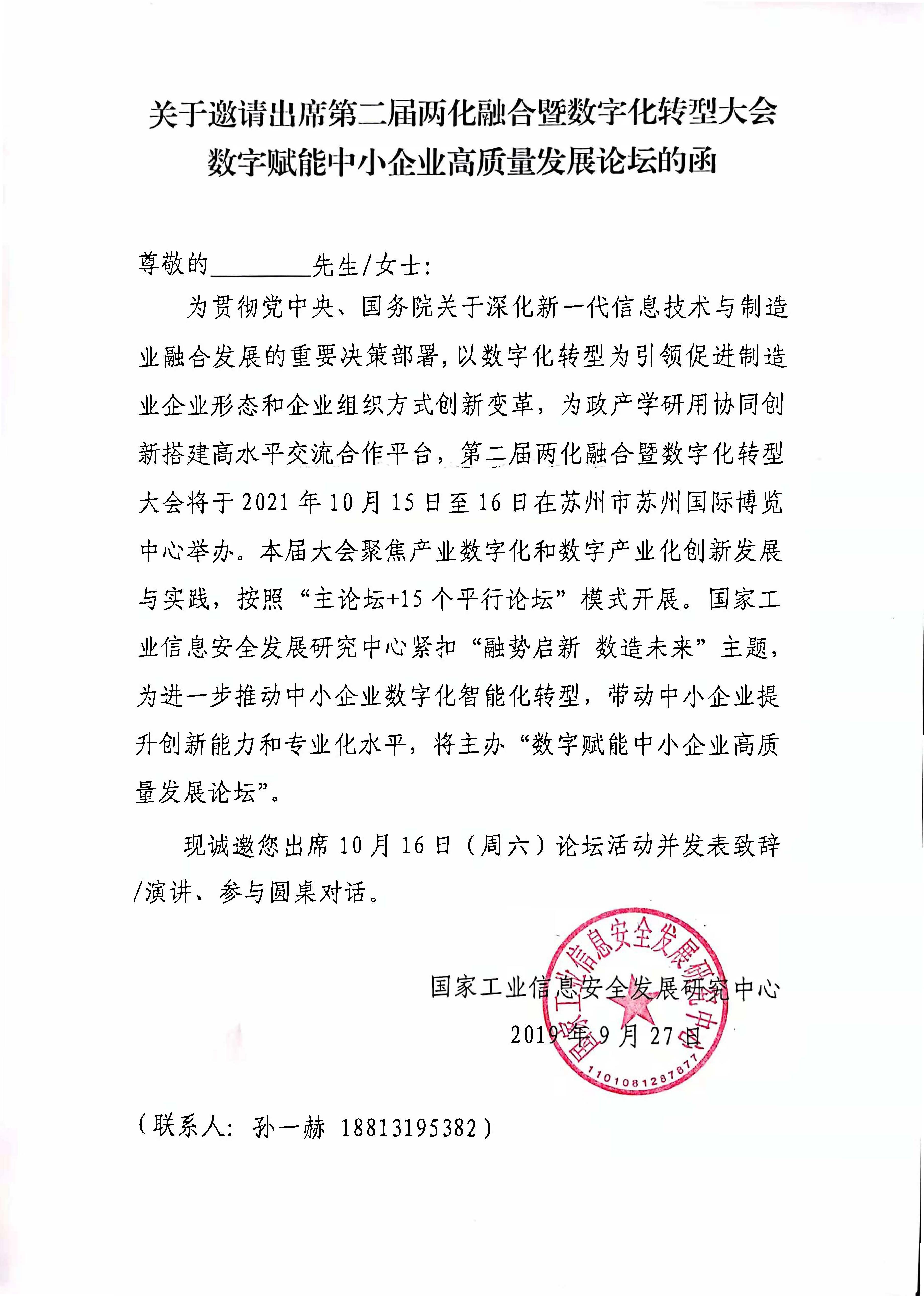 数字赋能中小企业高质量发展论坛将于2021年10月16日举办